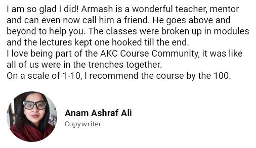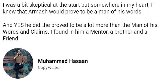 3. A comprehensive 1.5-hour long copy breakdown session where Armash Kamal breaks down all types of his copy samples and reveals his exact thought process behind every piece of copy.
